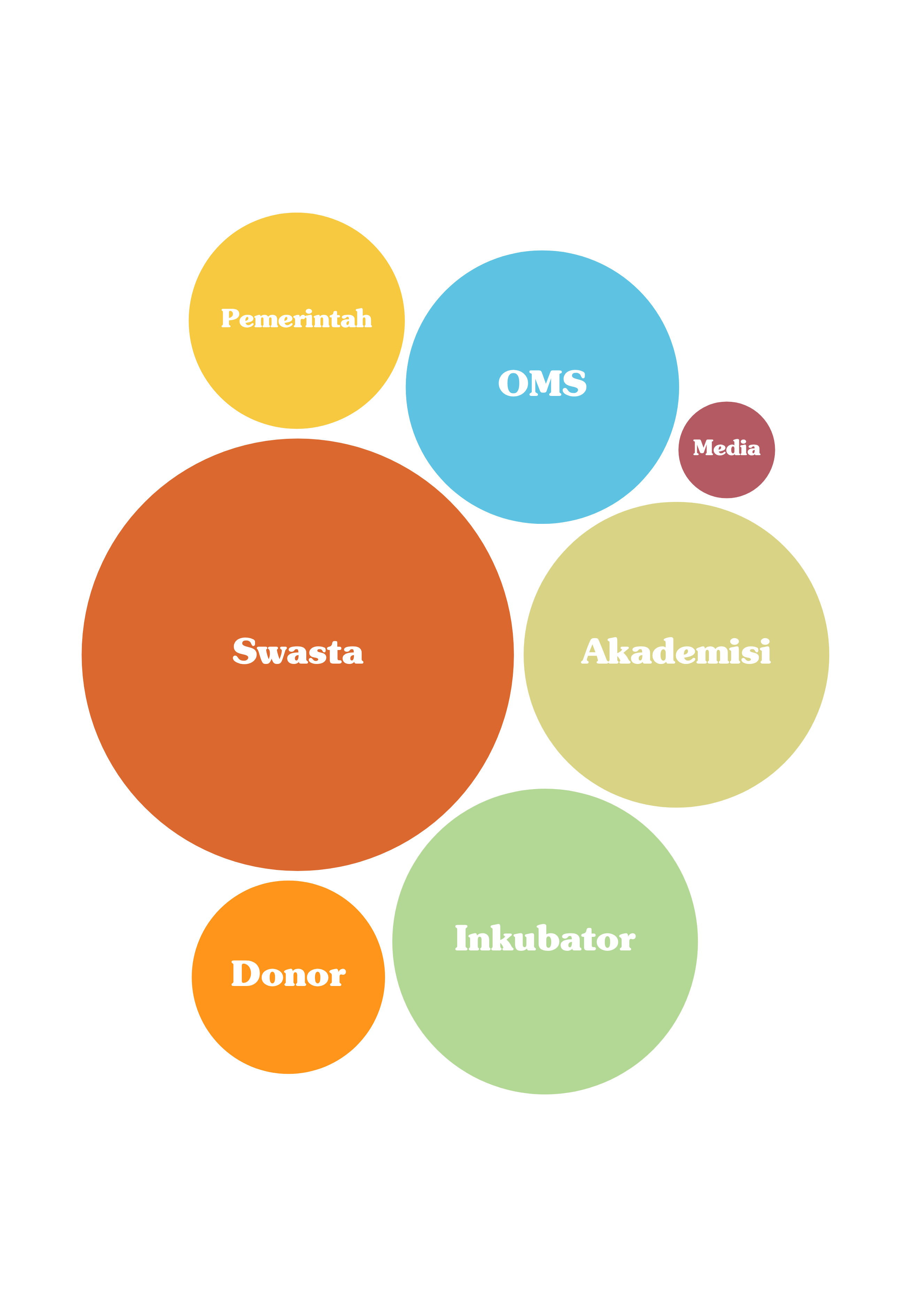 Peta ini memuat aktor penggerak dari ragam sektor dan latar belakang dalam Ekosistem Usaha Sosial.